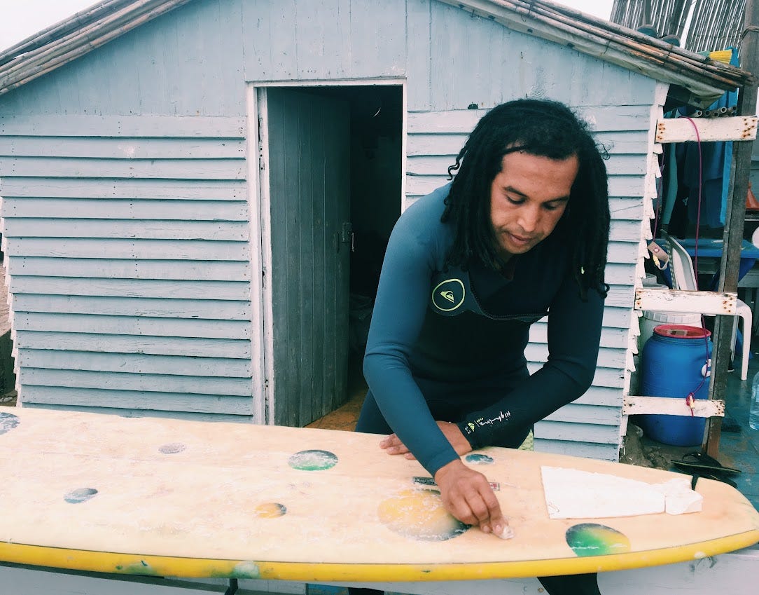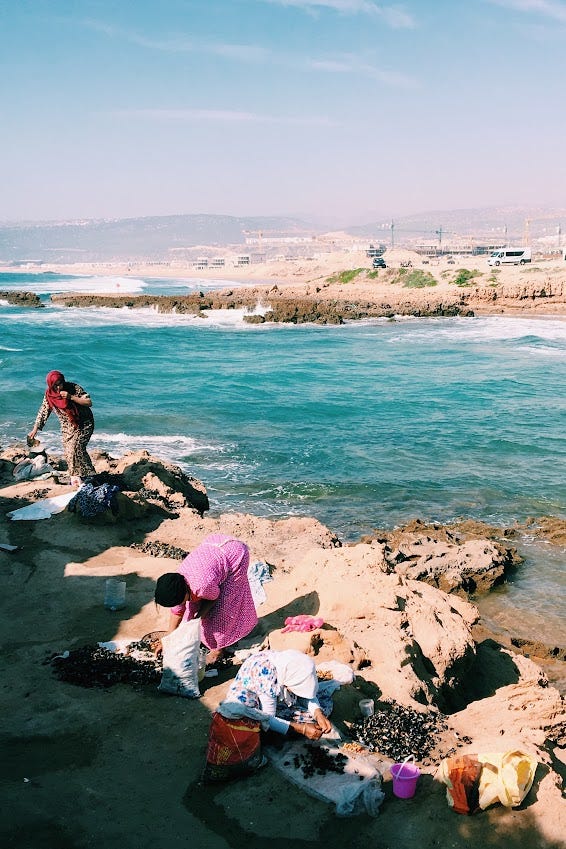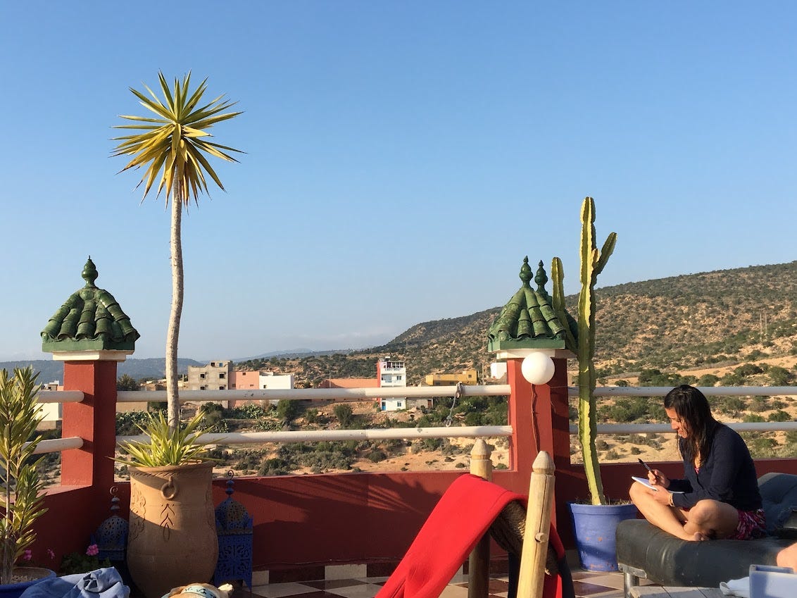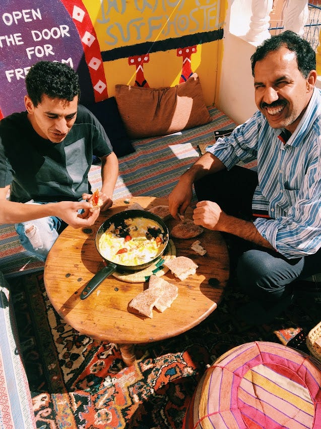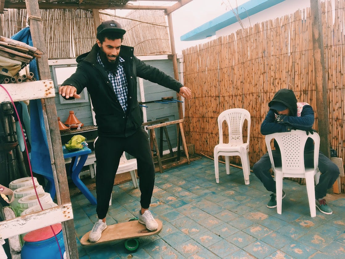 I spent a month and a half in Morocco in 2018. This was an incredibly special time – it was where I first really learned to surf. Thinking about this trip still brings me so much joy. I was in my last year medical school, and on the day that I flew out from Boston, there was still snow on the ground. I had some semblance of a plan – first spend a week in surf camp, then practice for the rest of my time there by myself. I couldn't have even imagined the people that I would meet.